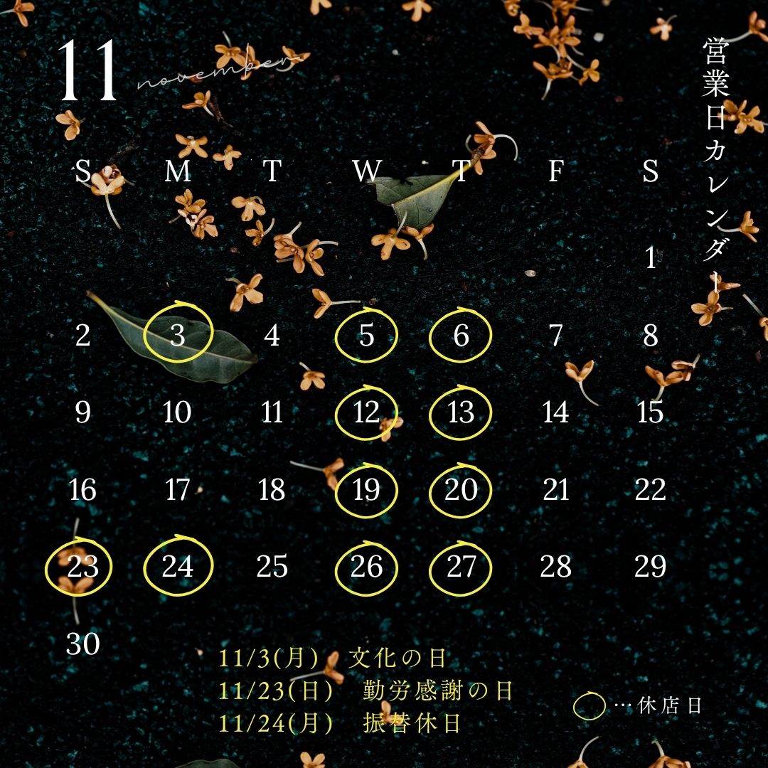 2025年11月の営業カレンダー2025.10.23 2025年4月より、店舗は水曜・木曜・祝日が定休日に変更になっていますのでご注意ください。11/3(月)文化の日、11/23(日)勤労感謝の日、11/24(月)振替休日 で休店になりますのでご注意ください。 皆様のご来店お待ちしております! 2025年10月の営業カレンダー(※10/5(日)臨時休店※)前の記事
